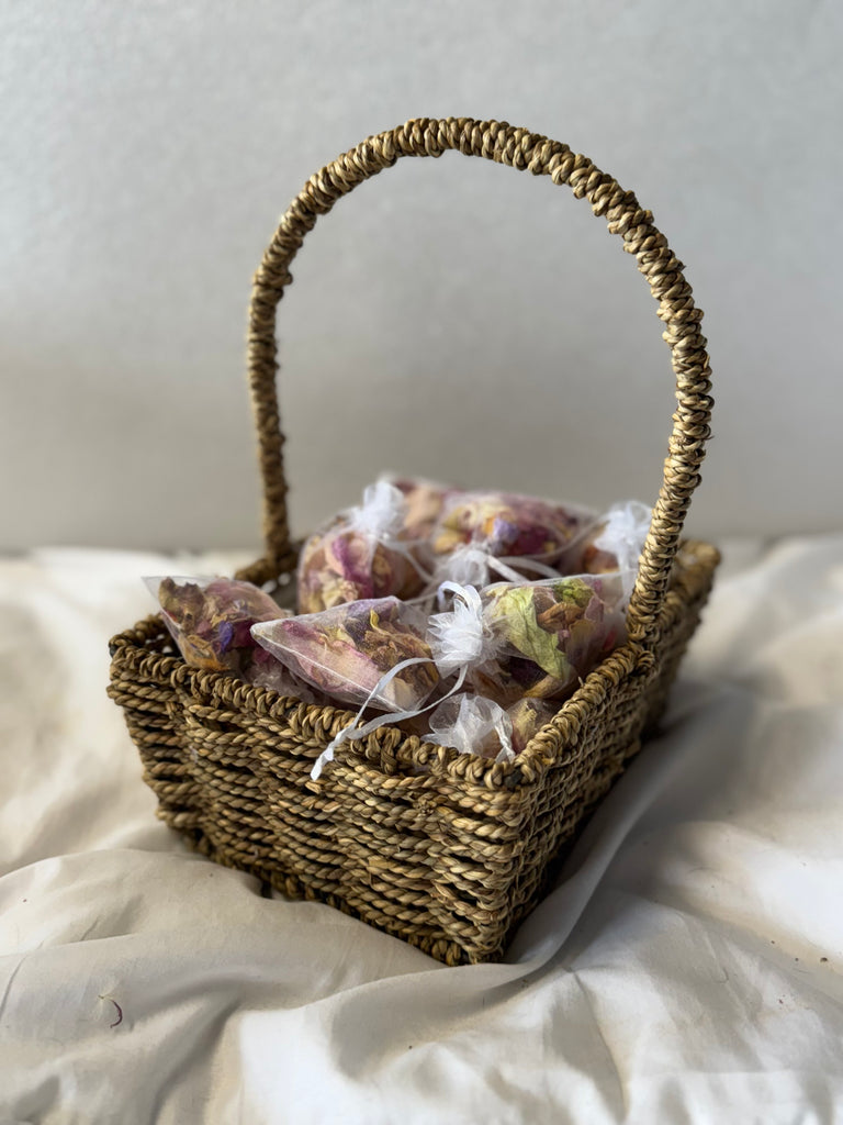 This lovely wicker basket, coming from a local small business, might be just the right one to hold your loose or bagged up Ezra's Confetti.